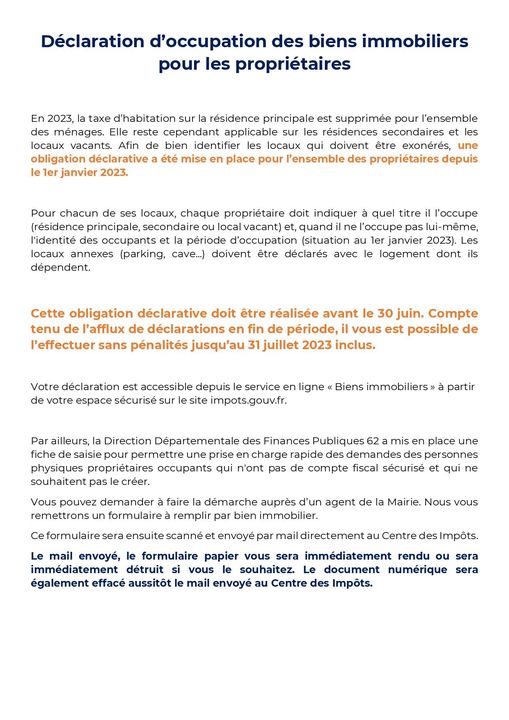 La demande de déclaration d’occupation des biens immobiliers est disponible en mairie.