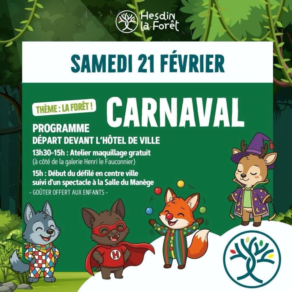 Carnaval 2026 Rendez-vous le Samedi 21 février Maquillage de 13h30 à 15h00 15h: Défilé suivi du spectacle « J’ai rêvé d’un magicien », rendez-vous place d’armes