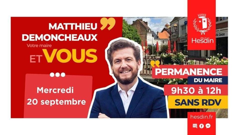 Matthieu Demoncheaux, Maire de la commune, vous reçoit le mercredi 20 septembre #savethedate de 9h30 à 12h00 en mairie sans rendez-vous.