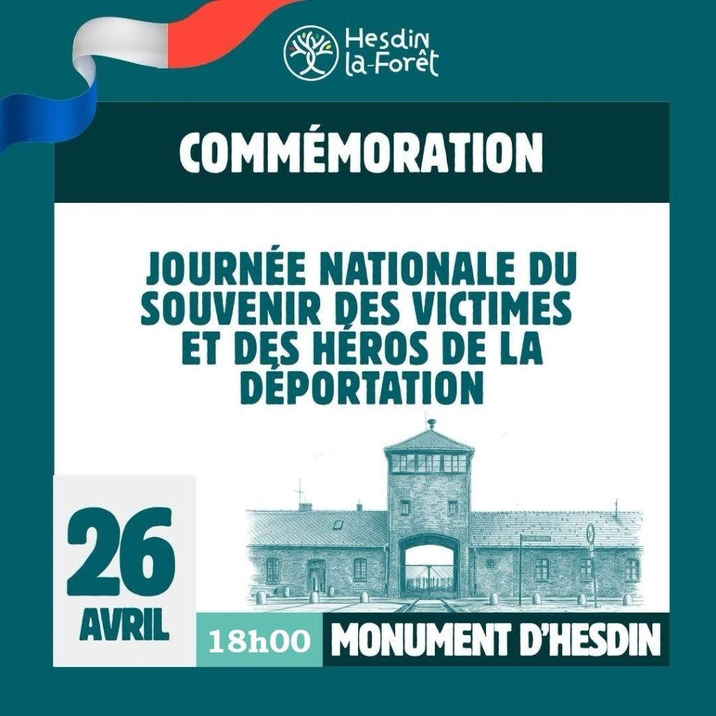 Journée nationale du souvenir des victimes et des héros de la déportation. Dimanche 26 avril a 18h00 Monument aux Morts de Hesdin.
