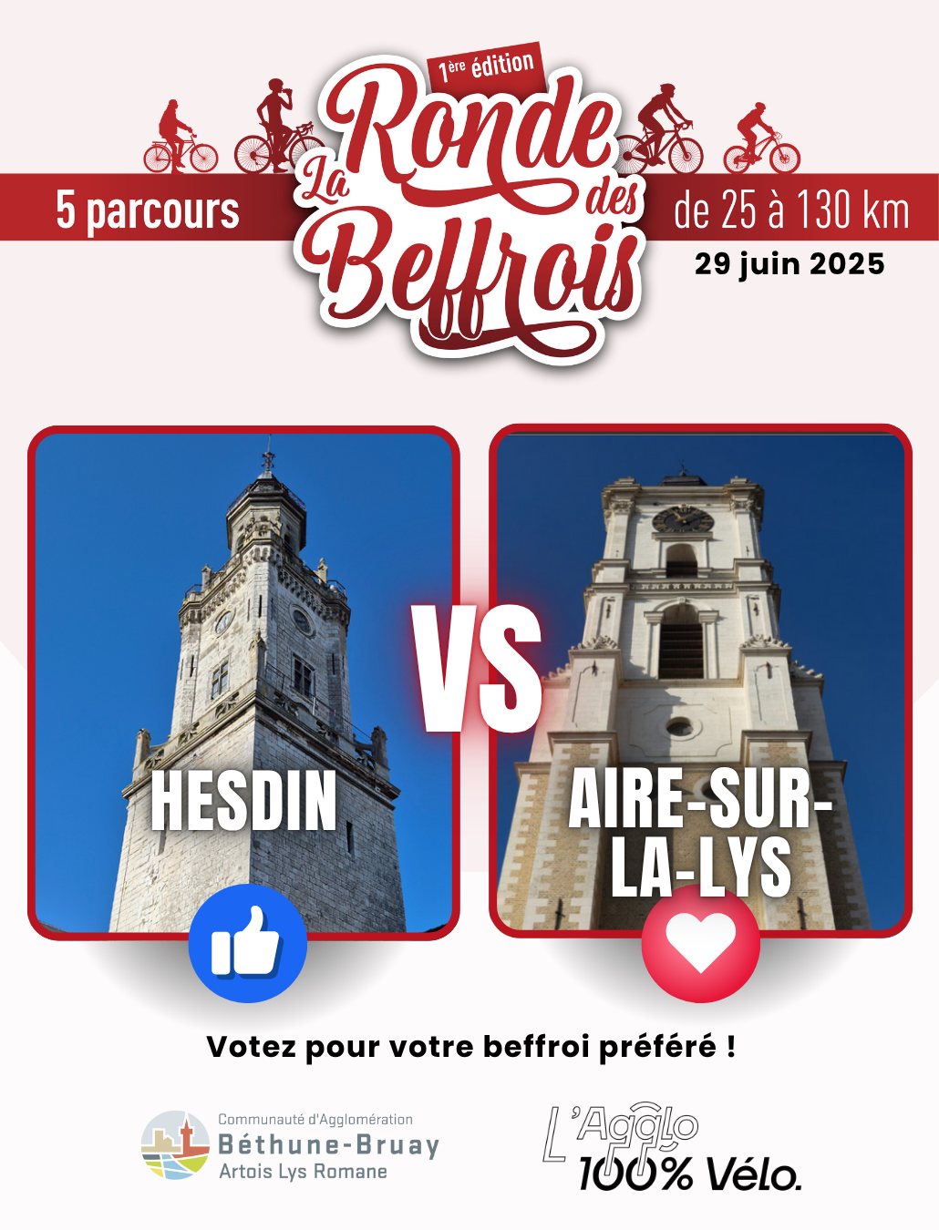 Dans le cadre de La Ronde des Beffrois, le premier événement cyclotouriste de l’Agglo, et pour fêter les 20 ans d’inscription des beffrois du Nord à l’UNESCO, les beffrois s’affrontent chaque semaine en duel.