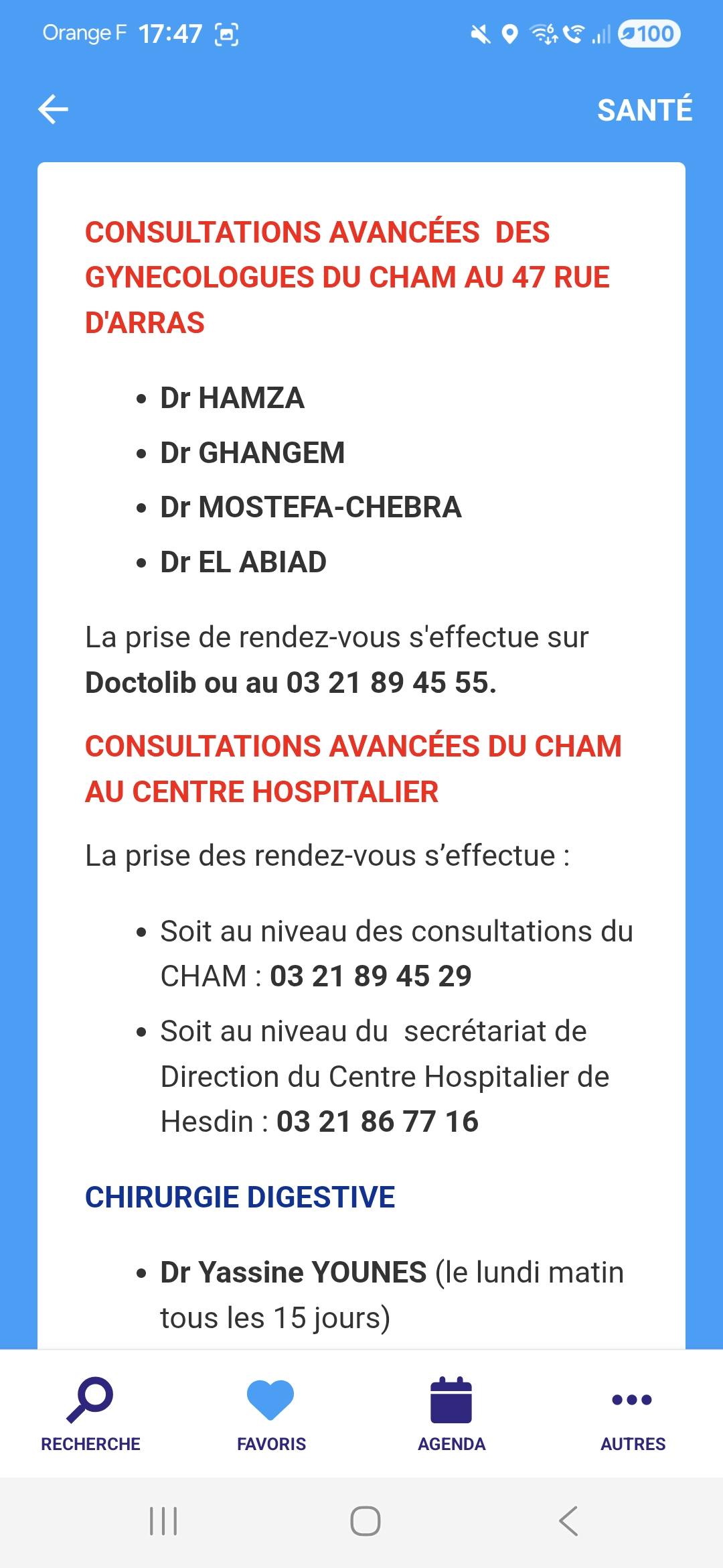 -Les consultations des gynécologues situés rue d’Arras (ancien cabinet de Mme Obin)