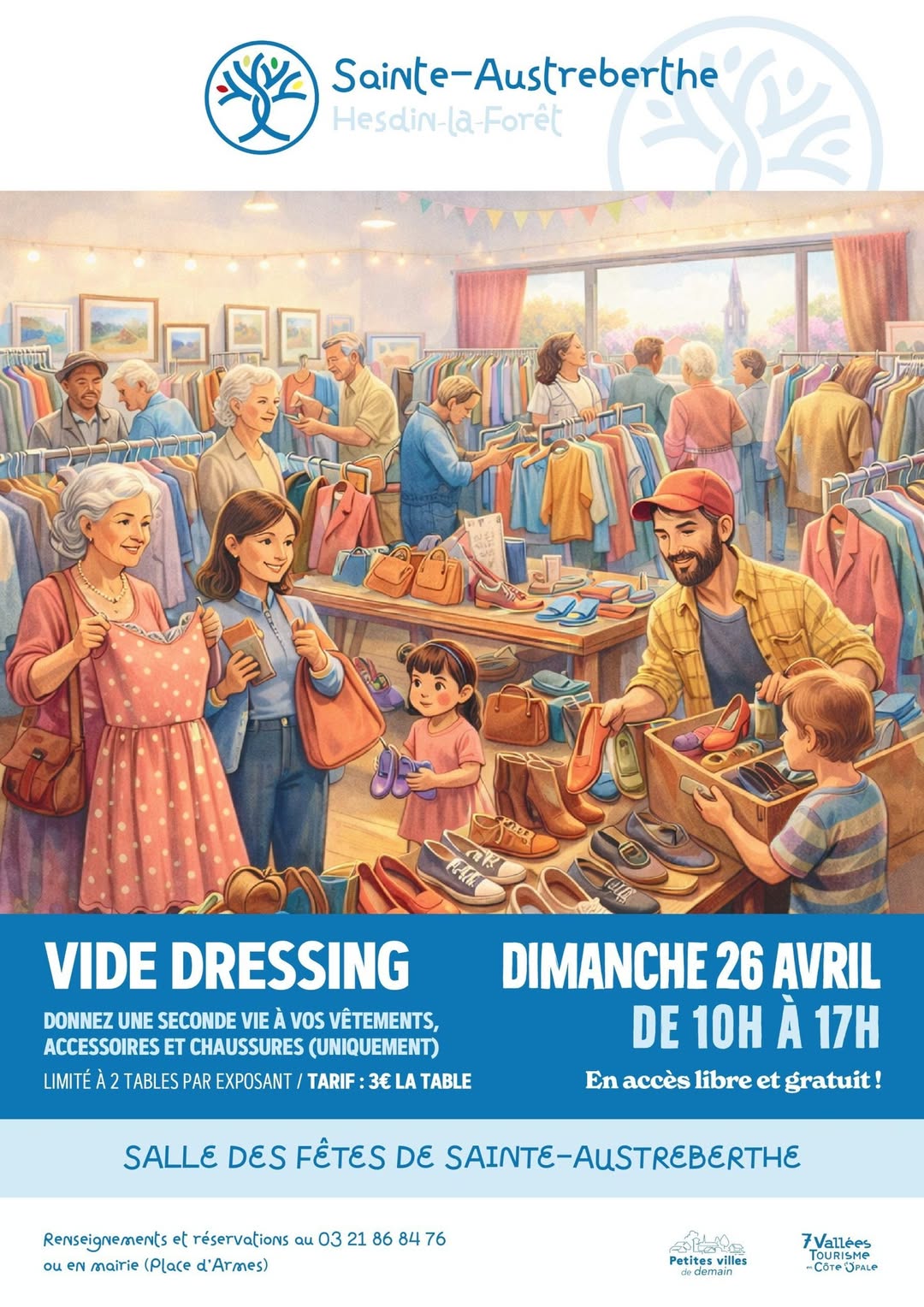 Rappel Vide dressing le dimanche 26 avril de 10h00 à 17h00, salle des Fêtes de Sainte-Austreberthe.
