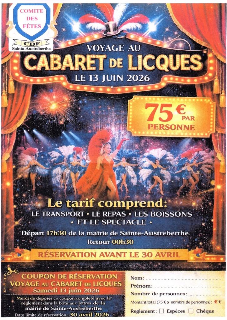 Le comité des fêtes de Sainte-Austreberthe vous propose une sortie exceptionnelle au cabaret de Licques !